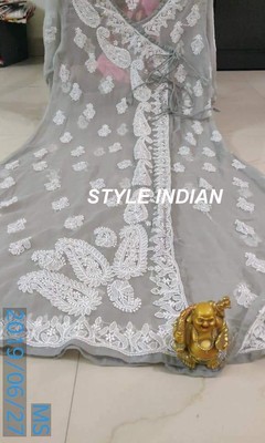 Chikankari Georgette Angarkha Kurta Ethnic Wear Lucknowi Chikan Anarkali Kurti Ebay - Stone work pure georgette gown cash on delivery available.