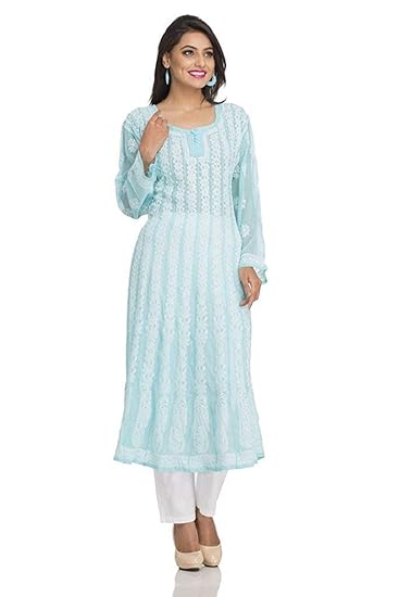 Buy Ada Hand Embroidered Lucknowi Chikan Faux Georgette Anarkali Kurti A106707 Blue At Amazon In - Lucknowi chikankari anarkali kurti | durga pooja & navratri special anarkali kurti at best price hii, welcome to my channel.