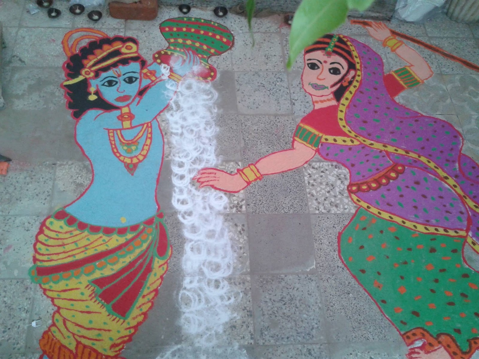 Krishna Janmashtami Rangoli Designs With Colours And Dots K4 Craft - The image of these lovers is so beautiful and romantic.