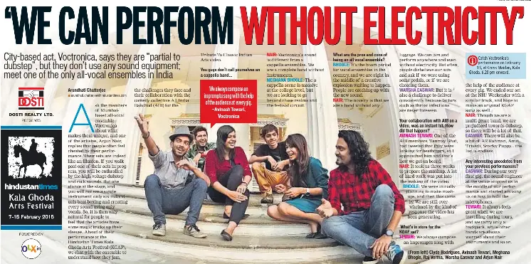Word Of Mouth Chennai First - Voctronica comprises avinash tewari, raj verma, warsha easwar, arjun nair and clyde rodrigues, and aims to showcase the power of human voice.